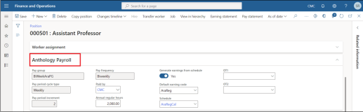 The Anthology Payroll tab in the Positions form