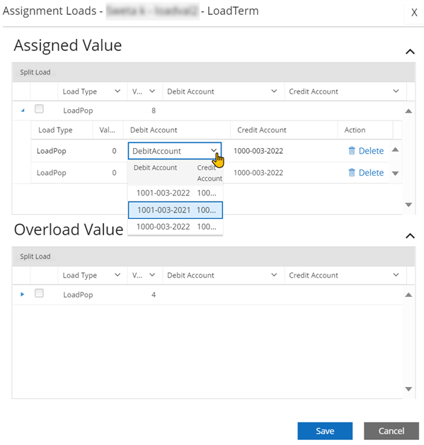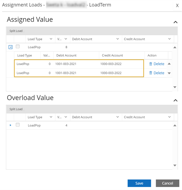 If you change the default GL codes and split the Load Types using the Split Assignment Loads option, the system maps the modified GL codes to the assignment