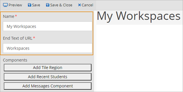 To preview your workspace, select the Preview button on the toolbar. To change any settings after previewing your workspace, you can return to previous screen and select the Back to Designer Palette button.