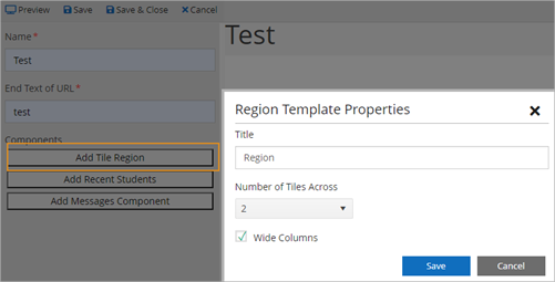 Select the Add Tile Region button. Anthology Student displays the Region Template Properties dialog.