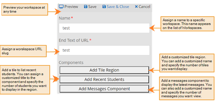 Workspaces extend the User Interface (UI) of Anthology Student so that institutions can bring together key information for specific users. Workspaces allow institutions to aggregate information from Anthology Student and outside sources including Power BI.