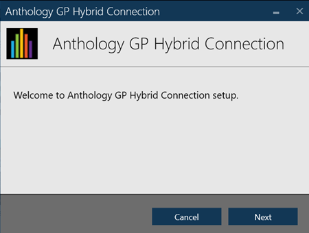 Open the installation file. The initial hybrid connection setup screen appears on the screen.