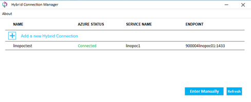 Once the installation is complete, verify whether a hybrid connection has been added through the Hybrid Connection Manager.