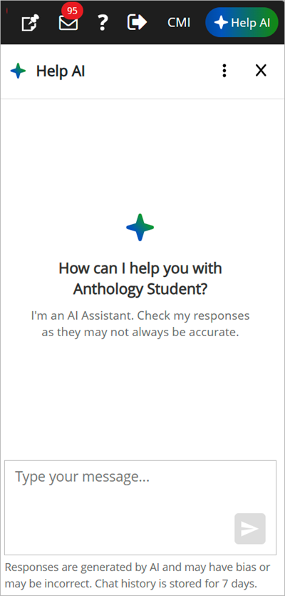 The Help AI button toggles the product guide on and off. Closing the window will disconnect the AI session until the user selects the Help AI button again to open the sidecar.
