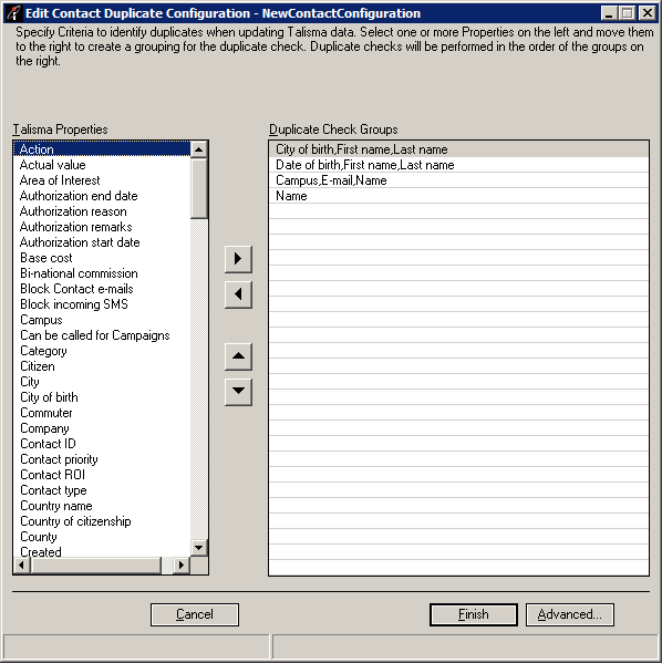 The Edit Contact Duplicate Configuration - <Configuration Name> Page