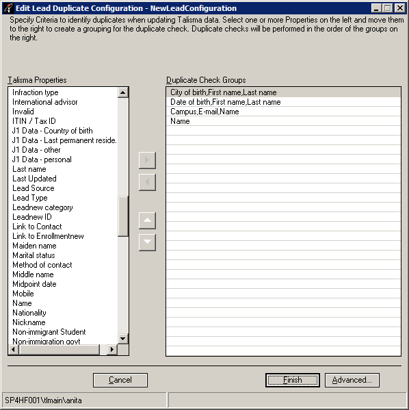 The Edit Lead Duplicate Configuration - <Configuration Name> Page