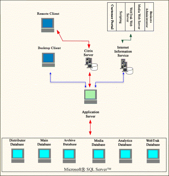 Distributor database is created to communicate information between Main database and the replicated databases. Main database is registered as a publisher with the distributor database, while Media, Analytics and WebTrak databases are registered as subscribers with the distributor database. |