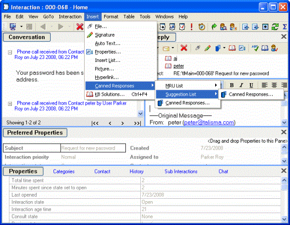 The AutoSuggest feature in Talisma provides a relevant set of Canned Responses when you are replying to an Interaction. This feature is enabled when the following conditions are met: