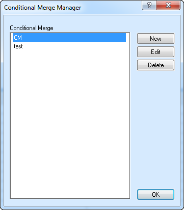 8. Click OK. The New Conditional Merge dialog box is closed, and the name of the newly created Condition is displayed in the Conditional Merge Manager.