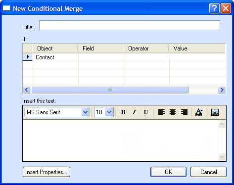 3. Click New. The New Conditional Merge dialog box is displayed.