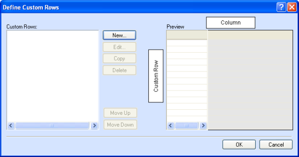7. Click OK. The new row is displayed in the Custom Rows area of the Define Custom Rows dialog box.