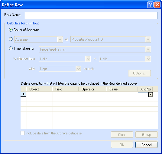 6. The Include data from Archive database option is enabled if you selected a Talisma Higher Education Foundation Object, an Interaction, a Campaign, or a <custom object> as the base Object. Select this option if you want the row to display information about the archived base Object.
