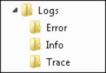 Note • In the Logs folder, a scenario can occur where the Info and Trace folders are displayed whereas the Error folder is not displayed because no errors are encountered. • Log files in the Trace folder are a combination of log files in the Error and Info folders. |