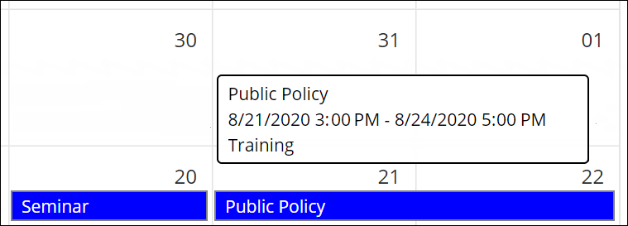 For information about configuring the Event Calendar widget, see Configuring the Event Calendar Widget.