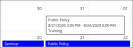 The recurring events are displayed as blocks on consecutive days when they occur and the one-time events (including those that span across multiple days) are displayed as a continuous line across days when they occur.