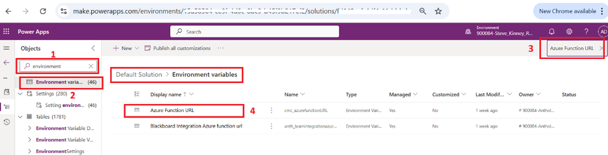 Select the Azure Function URL variable.