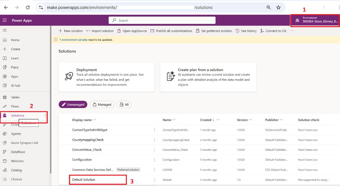 Navigate to https://make.powerapps.com/environments and select the Reach environment.