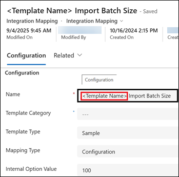 Set the Batch Size to 150 - If the template has around 5–10 related entities.