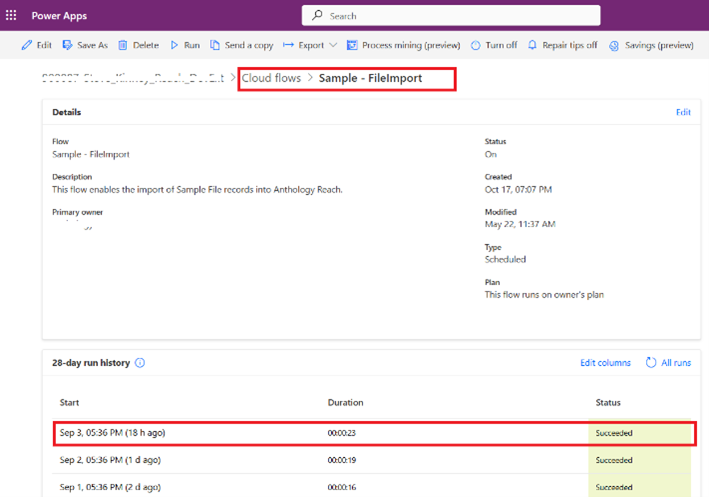 Find your import flow (based on the template) and click on it to open.