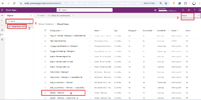Search for Cloud Flows using search bar on the left side of the page and select Cloud Flows.