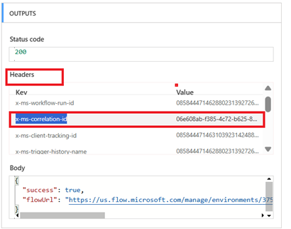 Find the section called “Headers” and find the “x-ms-correlation-id” and copy the value next to it (Make sure you copy the full value).
