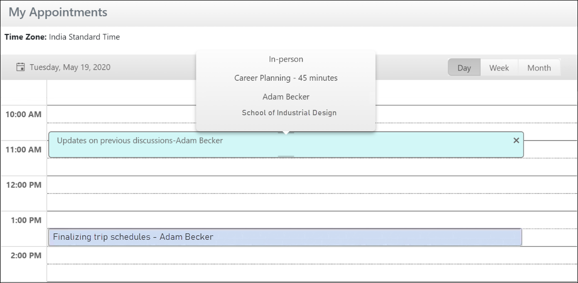 - The reason for the appointment (whether it's a session for career planning, counseling, and so on) and its duration.
