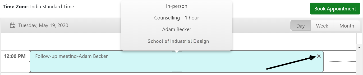 - View the appointment record that you want to cancel and then click X.
