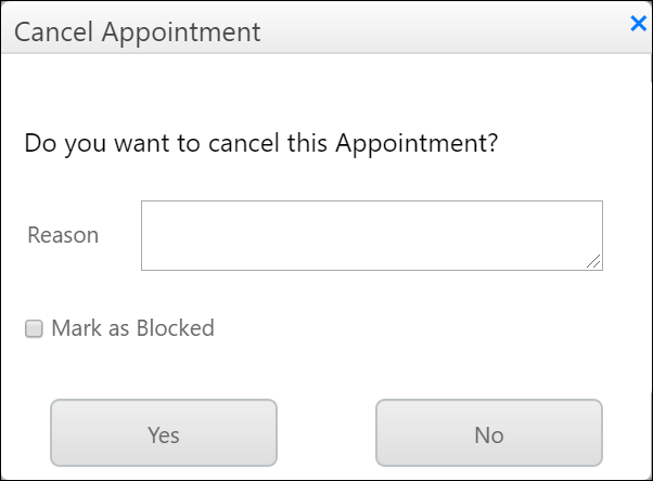 - On viewing the Cancel Appointment dialog, perform the steps described in the above procedure.