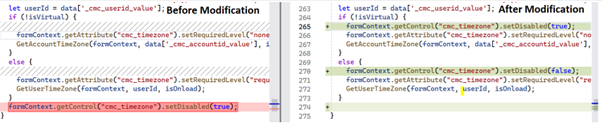 else {formContext.getControl("cmc_timezone").setDisabled(false);formContext.getAttribute("cmc_timezone").setRequiredLevel("required");GetUserTimeZone(formContext, userId, isOnload);