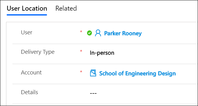 Note: While multiple user location records of type In-person can be created for a user, only a single user location record of type Virtual can be created per user.