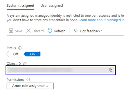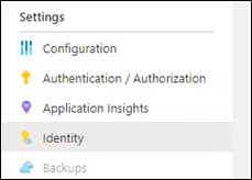 In your institution’s Azure function app, click Identity in the left pane (Settings > Identity).