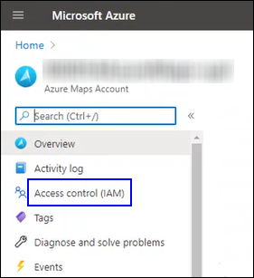 On the Resources page, click your institution’s Azure Maps Account and then click the Access Control (IAM) link in the left pane.