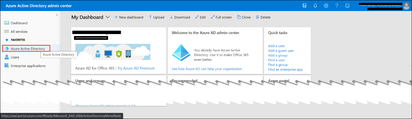 Using admin credentials, login to https://aad.portal.azure.com/.