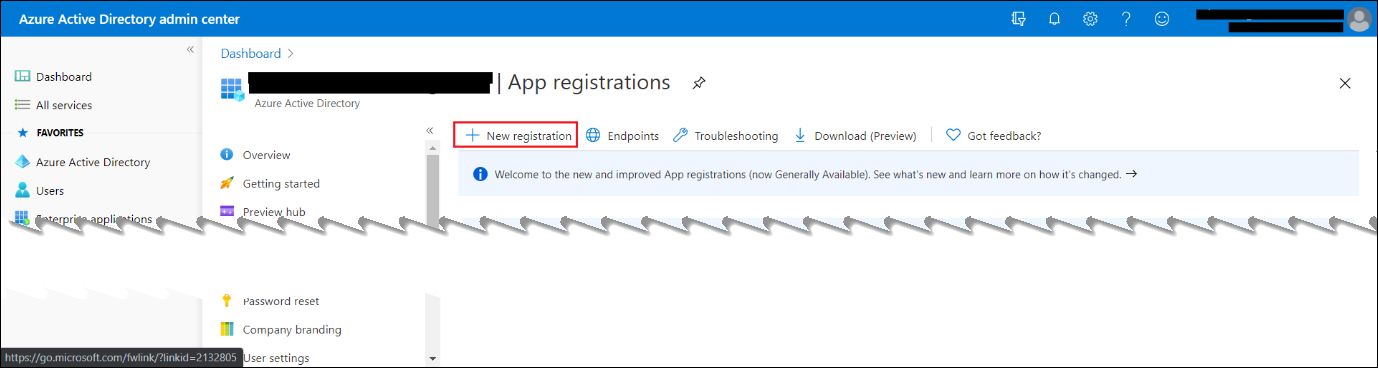- Navigate to App Registrations > New Registrations.
