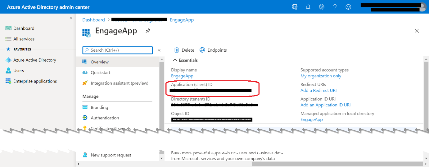 The EngageApp will be registered. Make a note of the Application (client)ID.
