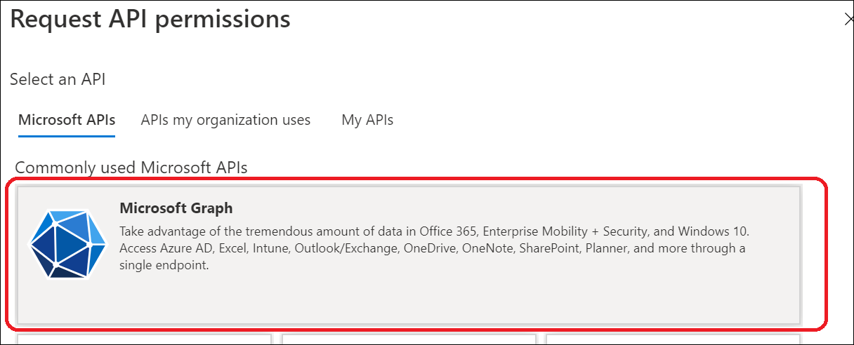 - Select Microsoft Graph under Microsoft APIs.