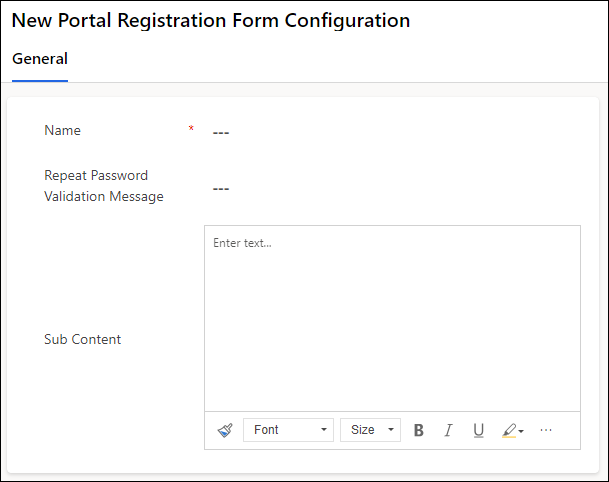 A Portal Registration Form Configuration record is the container record for the fields that will be displayed on the registration form of the required portal user, such as Student, Recommender, Agent, etc.
