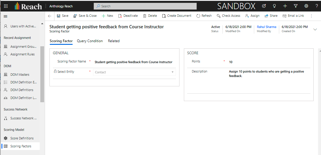 In the Campus Survey form, when a course instructor provides a feedback for the academic performance of a student, scoring points can be assigned to the student in Anthology Reach.