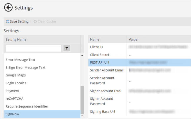 | SignNow | See SignNow Settings. |