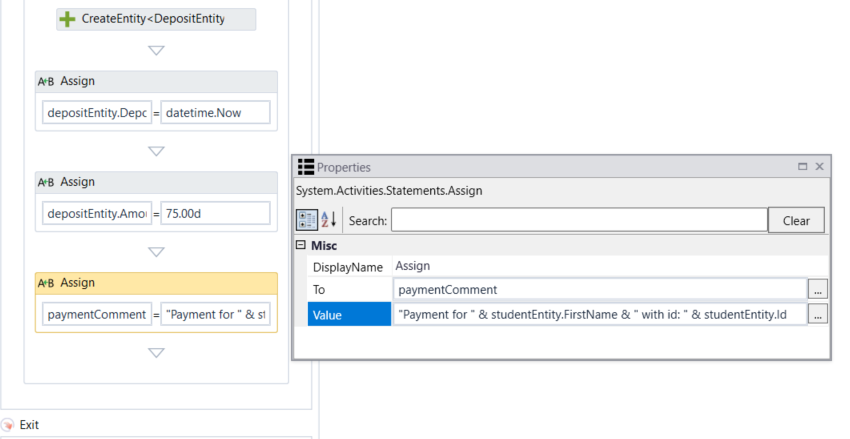 Payment Comment is optional. Enter a string or a binding for a comment which can appear in reports. This is normally set in a workflow by binding. If it is bound, it must begin with