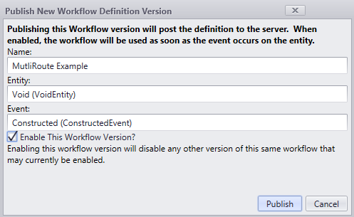 Publish the updated workflow for the multi route form sequence. Be sure to select the Enable This Workflow option.
