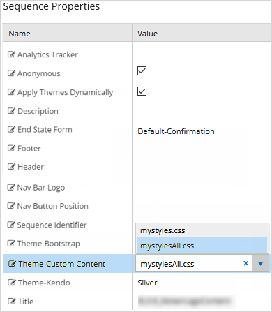 This section describes how to apply a CSS file to forms in a sequence, to a sequence, or globally across all sequences.