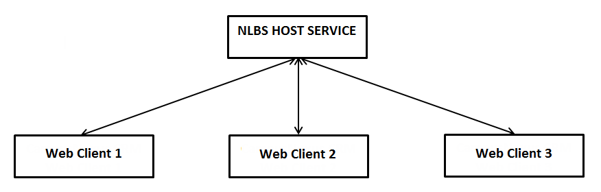 The configuration requires that multiple Web Client computers must all be connected to a computer on which the NLBS service is hosted. The following figure illustrates this configuration: