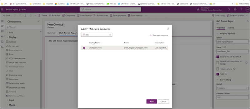 In the Add HTML web resource page, select LmsReport.html and click Add.