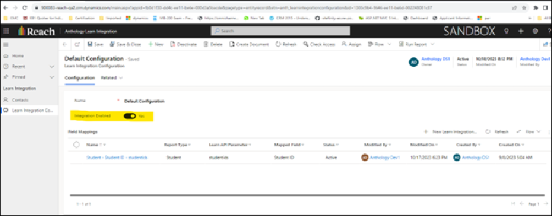 In the Anthology Reach environment, open the Blackboard Integration Model-Driven App.