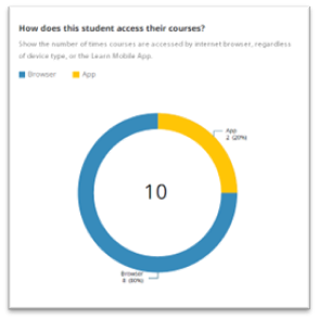 | How does this student access their courses? | Shows the number of times courses are accessed by internet browser, regardless of device type, or the Blackboard Mobile App. |