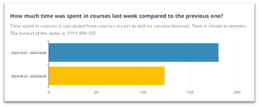 | How much time was spent in courses last week compared to the previous one? |