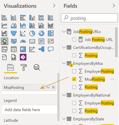 In our example, we selected the 'MsaPosting' field and dropped it into the Location bucket.