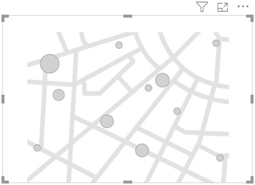 A placeholder for the selected visual type (e.g., map) is displayed on the canvas. Use the handles on the placeholder to resize the visual.