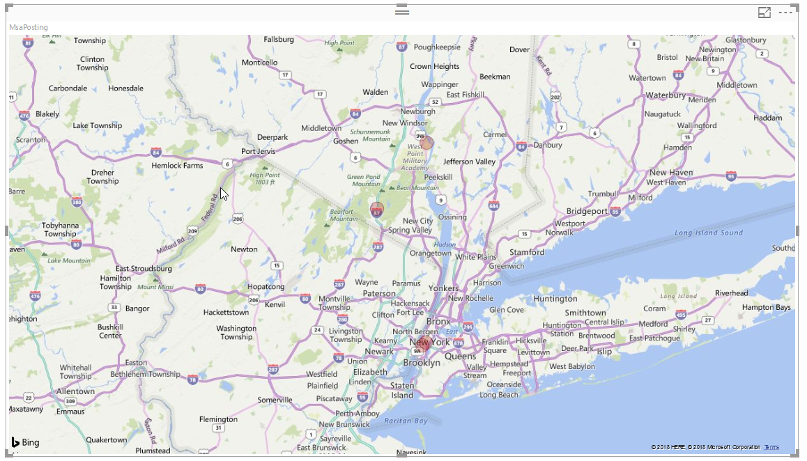 In our example we chose Basic filtering and selected 3 MsaPosting values that we want show on the map visual.